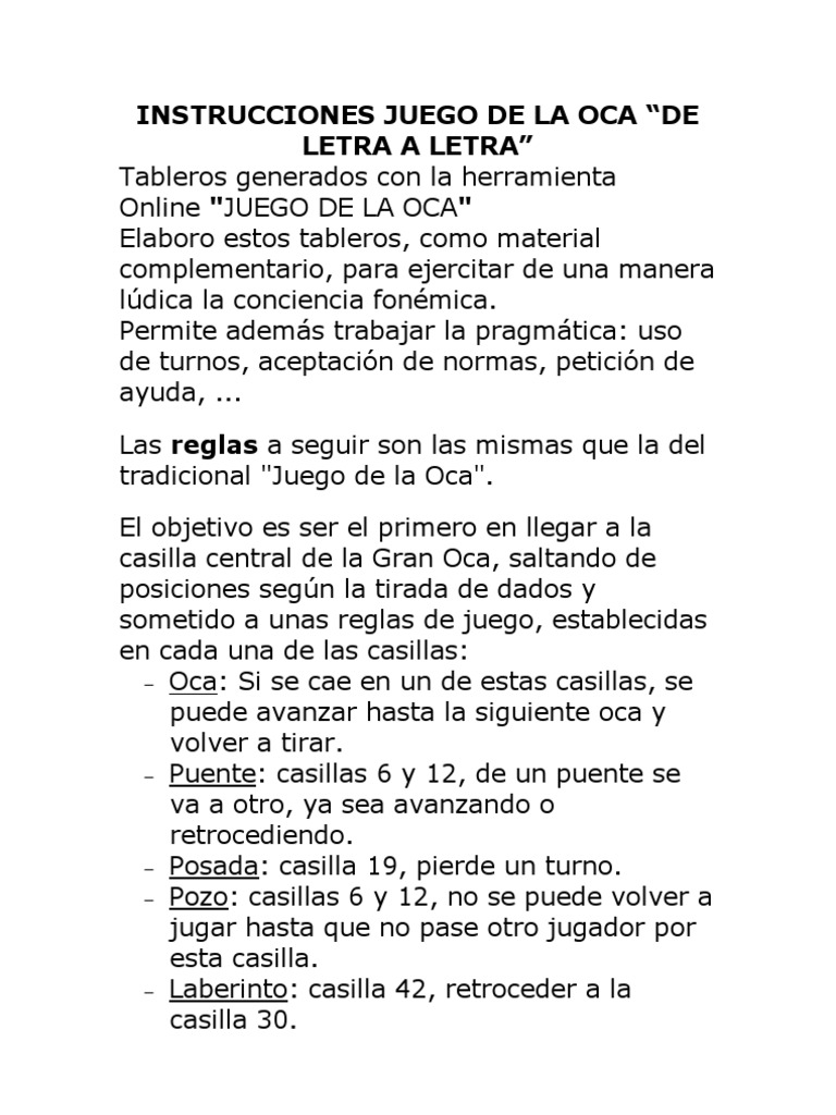 Sin embargo, también incluye el tipo de fuente y los espacios. Casilla 19, pierde un turno. Consulta instrucciones y cómo jugar a más de 35 juegos diferentes con la baraja española: Hacerlo significa que sigues un rumbo lógico de explicación para la el formato del juego incluye el diseño y el orden de las instrucciones. En este juego se le vendan los ojos a uno de los participantes y se le dan varias vueltas para que.
